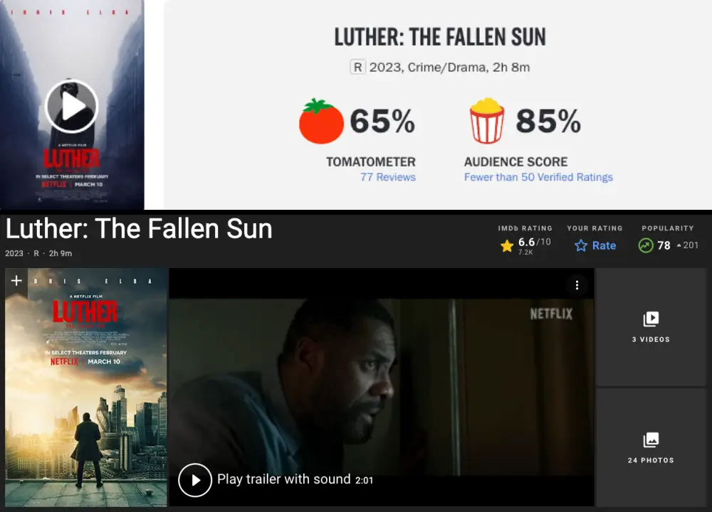 이렇게 <루터: 태양의 몰락>은 배우들의 뛰어난 연기력과 긴장감 넘치는 액션 등을 선사해 주는 작품이라 할 수 있습니다. 일부 시청자에게는 다소 과할 수 있는 폭력성이 있을 수 있지만, 이야기의 목적에 부합하고 전반적인 긴장감을 더해 주기 때문에 범죄 스릴러나 드라마 <루터> 시리즈의 팬이라면 이 영화를 놓치고 싶지 않은 영화 일 것입니다.